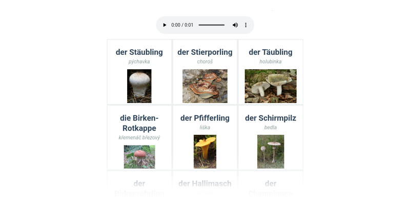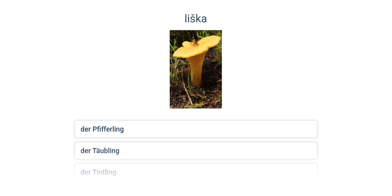 Zazní zvuková nahrávka a úkolem je vybrat správné slovo z nabídky.